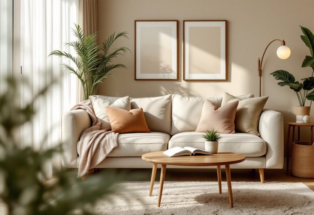 Les coussins sont non seulement décoratifs, mais leur texture douce ajoute un confort supplémentaire. Choisis des éléments textiles aux motifs variés pour dynamiser visuellement la pièce sans surcharger le décor.